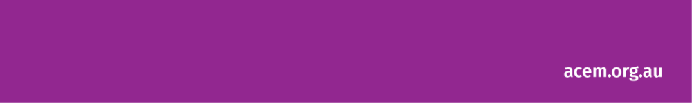 If you have any questions or need more information or like to make a change, please don’t hesitate to contact us networks@acem.org.au
